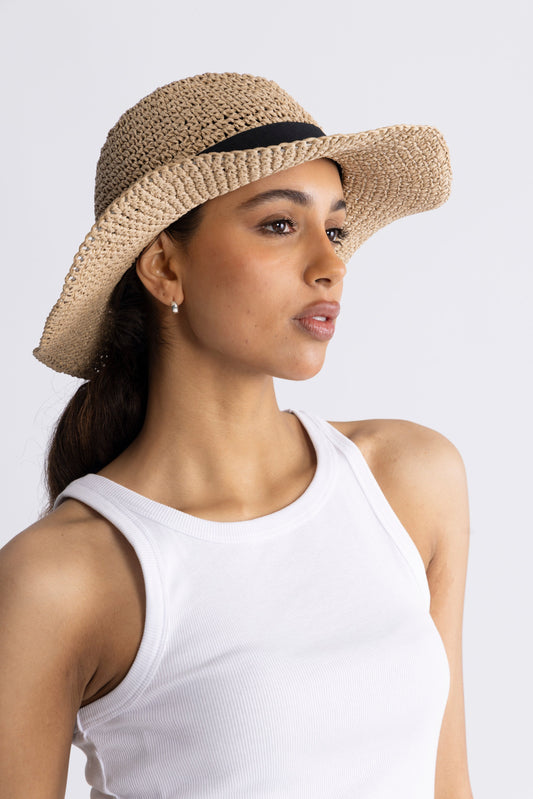 • Heklet raffiahatt for dagbruk